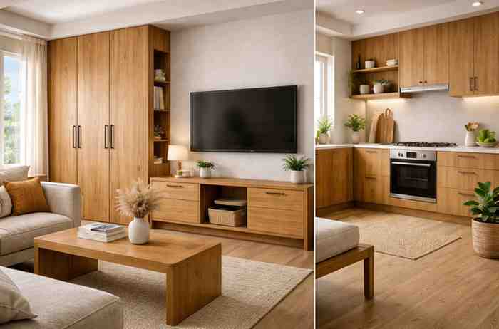In a nutshell, modular kitchens, particularly in wet environments, are suitable due to BWP-grade moisture protection.